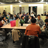 台北分會會長紘融則帶領著大家先跳飯前開胃舞「Banana Dance」 (香蕉舞)。接著大家圍桌聚餐、進行台北馬來西亞的餐敘交流。在用藥石的過程,大家分享許多兩個國家的生活趣事、也聽了馬來西亞法青這幾天來參加二日禪、參觀故宮的心得。因為有「中文」作為橋樑與「佛法」的接引,大家在談天之餘更能夠分享彼此的心情和法喜。飯後大家欣賞了很多青年院辦理豐富開心的活動,馬來西亞法青也同樣地和大家一樣,努力將師父的佛法傳播出去。其中相當有創意的,是他們運用廢棄的彩色布料,經由課程及悦眾的帶領下,轉而設計成為筆記本。同樣是環保的概念,卻可以有不同的創意!